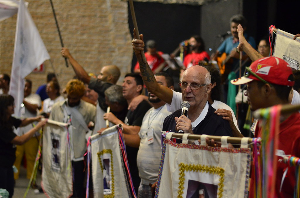 Ninguém solta a mão de padre Júlio Lancelotti.